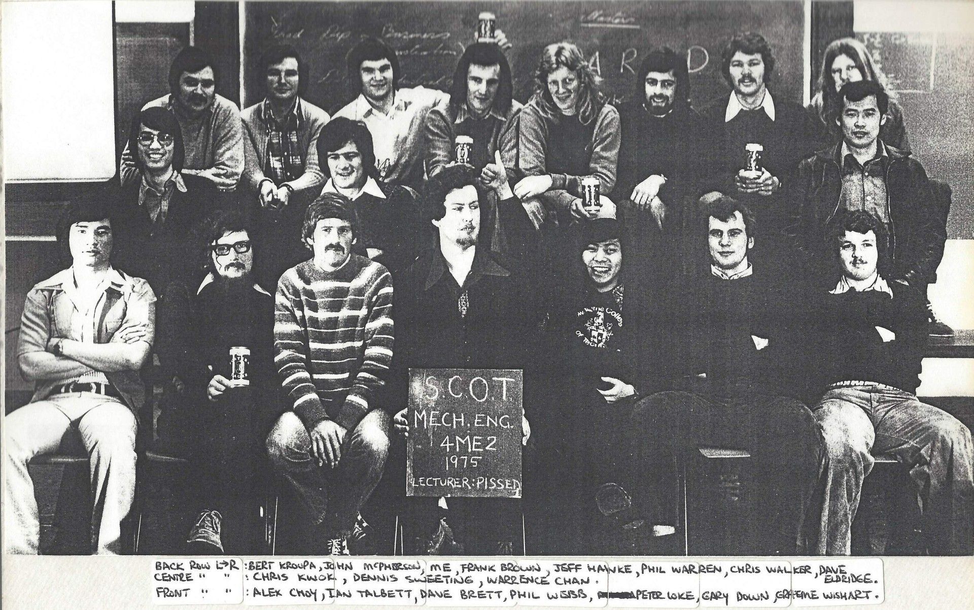 The 1975 graduates on their last day of classes.