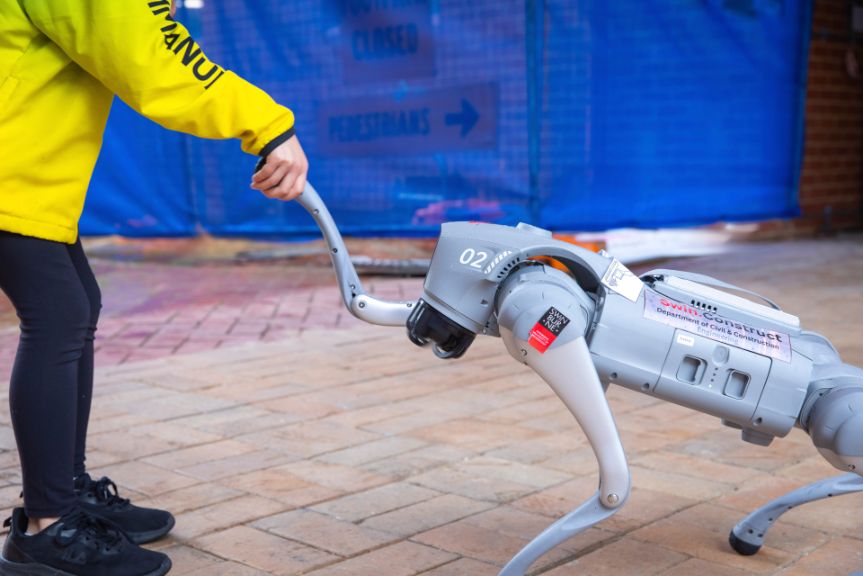 Shake hands with Spot, the Boston Dynamics robot dog roaming around campus.